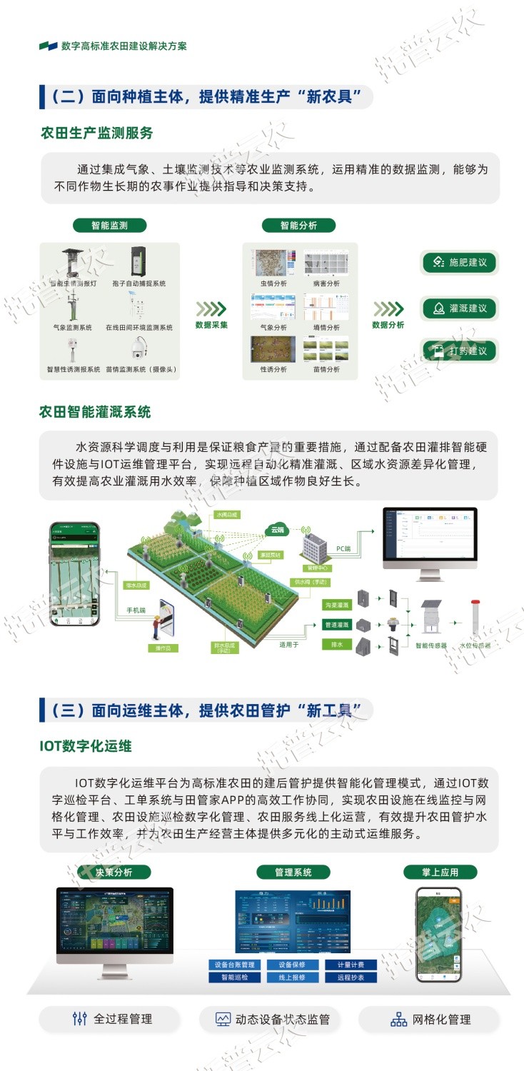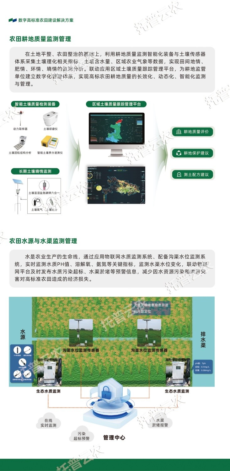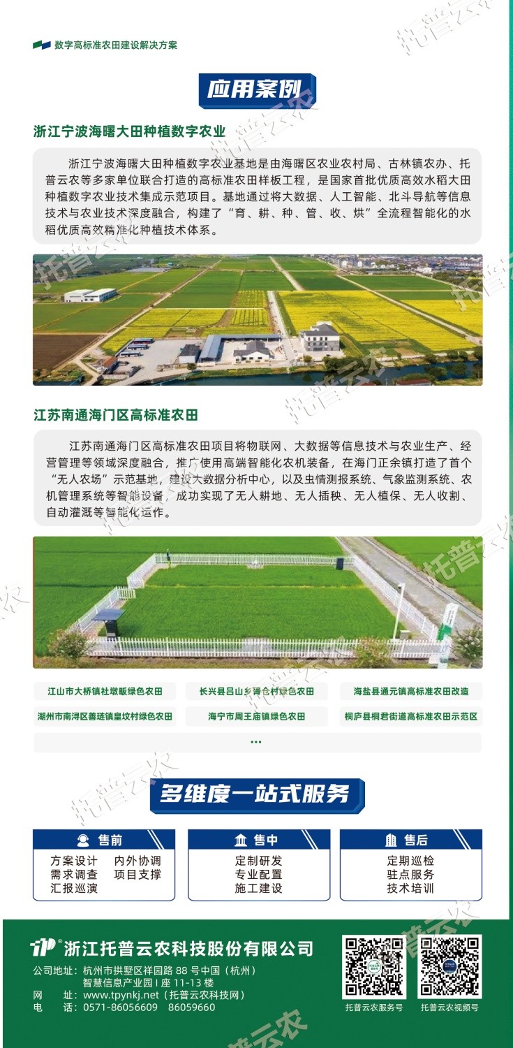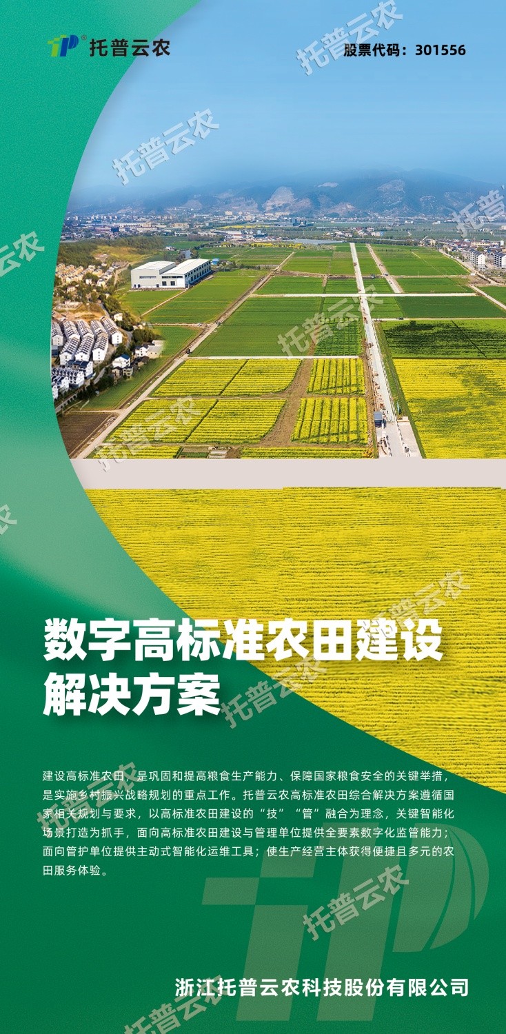 作為中國智慧農(nóng)業(yè)領(lǐng)域的先行者,浙江托普云農(nóng)科技股份有限公司(股票簡稱:托普云農(nóng),股票代碼:301556)始終立于行業(yè)一線,深入探索數(shù)智技術(shù)與農(nóng)業(yè)生產(chǎn)的融合應(yīng)用,以高標(biāo)準(zhǔn)農(nóng)田建設(shè)的“技”“管”融合為理念,以關(guān)鍵智能化場景打造為抓手,構(gòu)建數(shù)字化、智能化、集約化的高標(biāo)準(zhǔn)農(nóng)田(綠色農(nóng)田)建設(shè)解決方案。