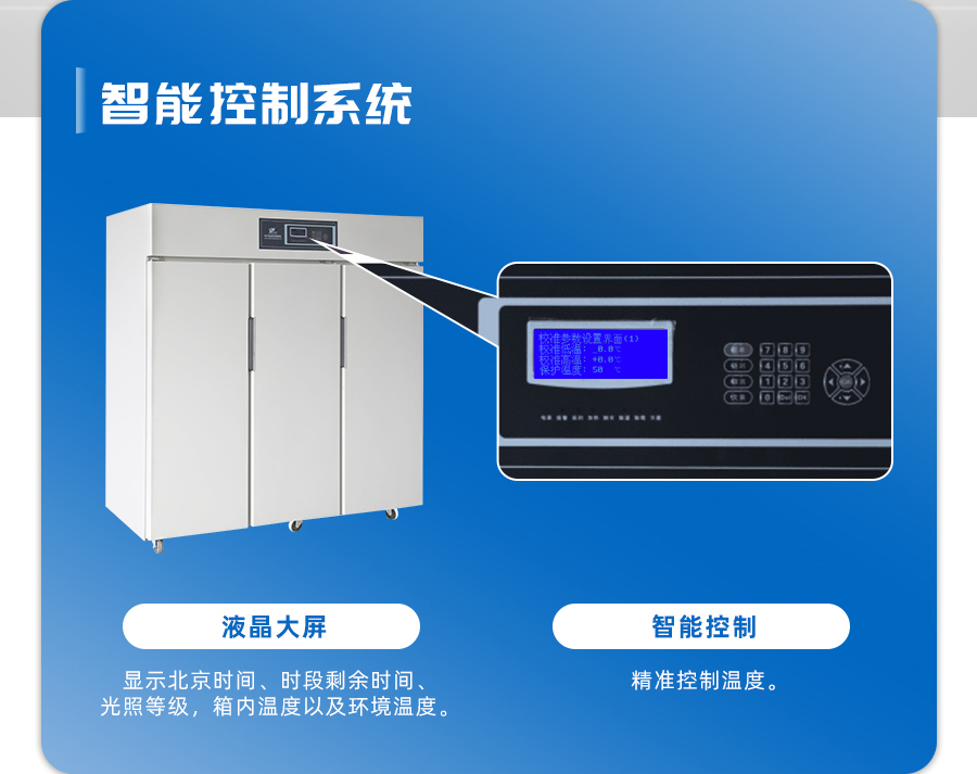 3、種子低溫低濕儲(chǔ)藏箱的控制系統(tǒng)具有除霜,延時(shí),超溫報(bào)警,自動(dòng)除濕,時(shí)差糾正,紫外殺菌等功能,安全可靠。